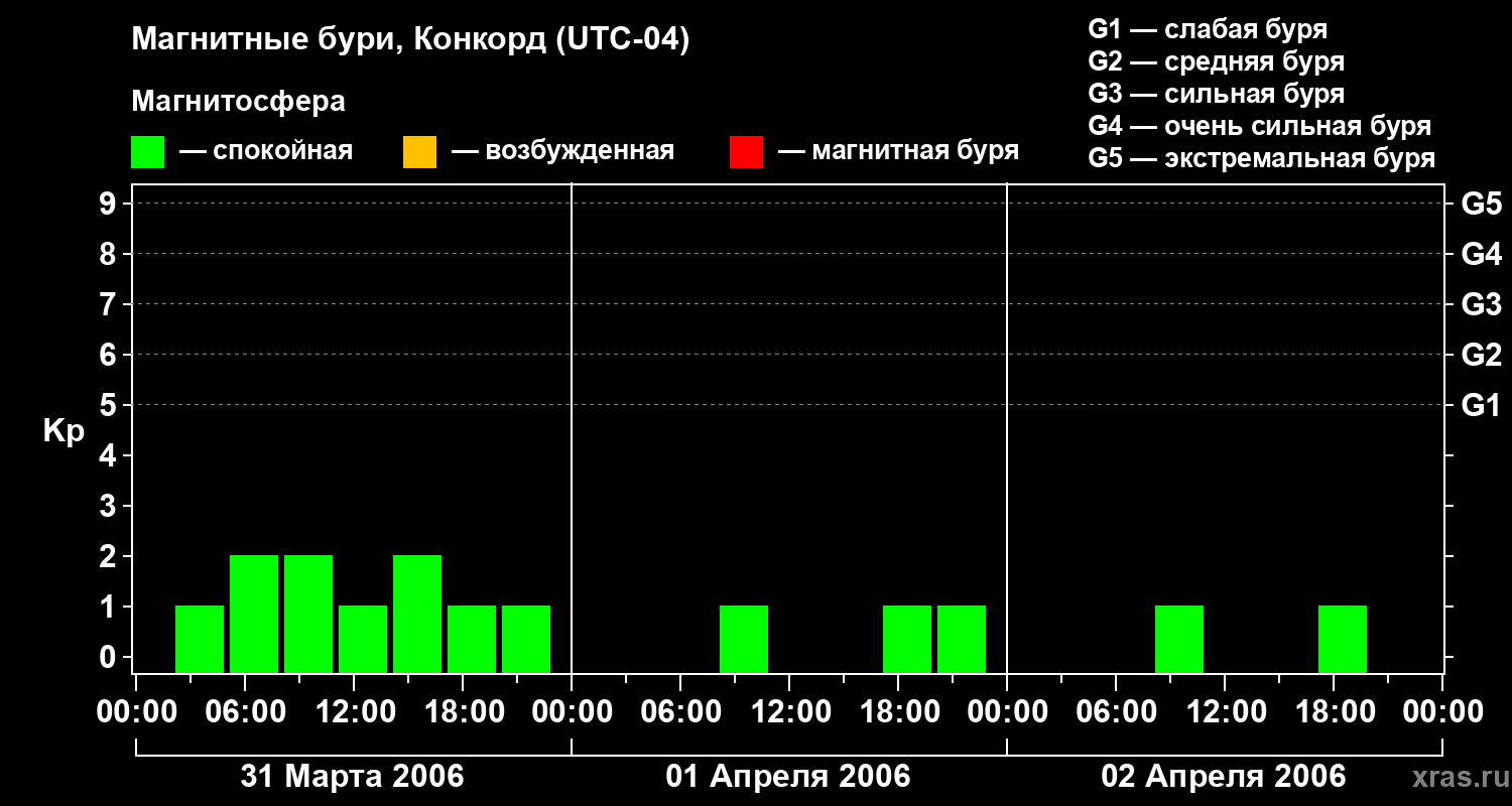 Магнитные бури в Конкорде 2 апреля 2006 года
