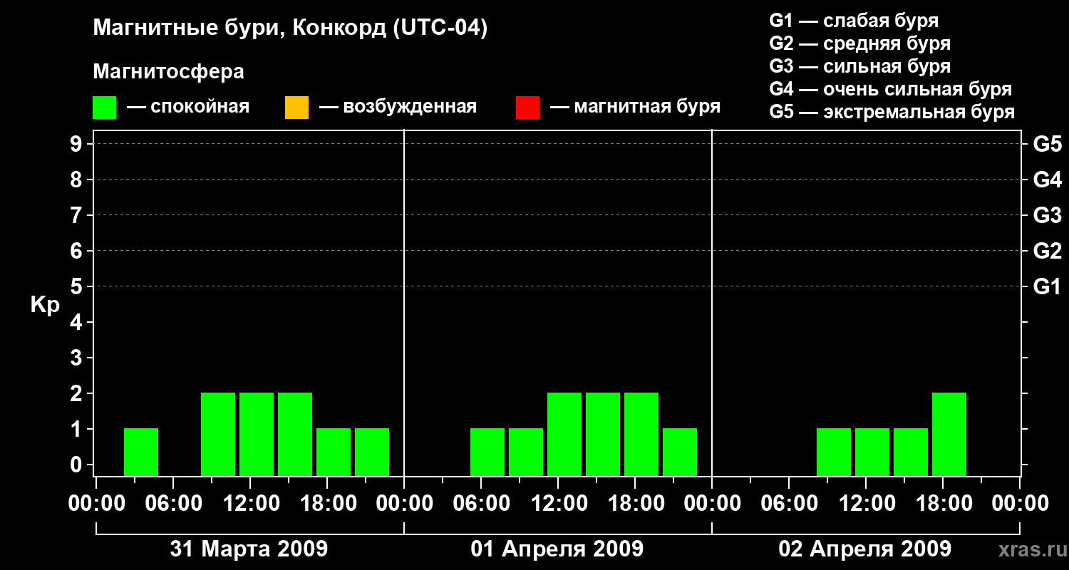 Магнитные бури в Конкорде 2 апреля 2009 года