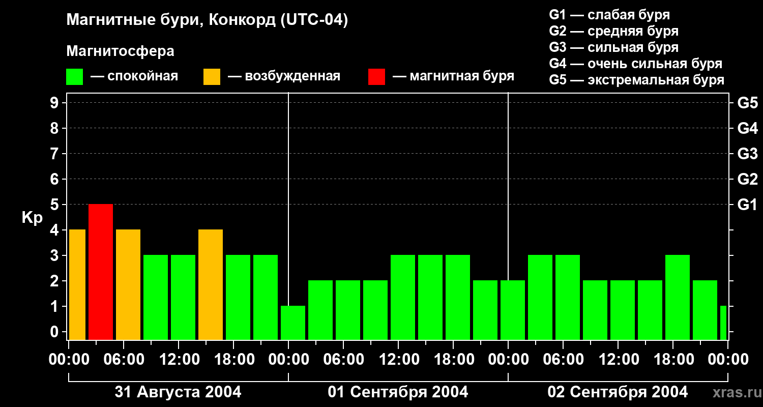 Магнитные бури в Конкорде 2 сентября 2004 года