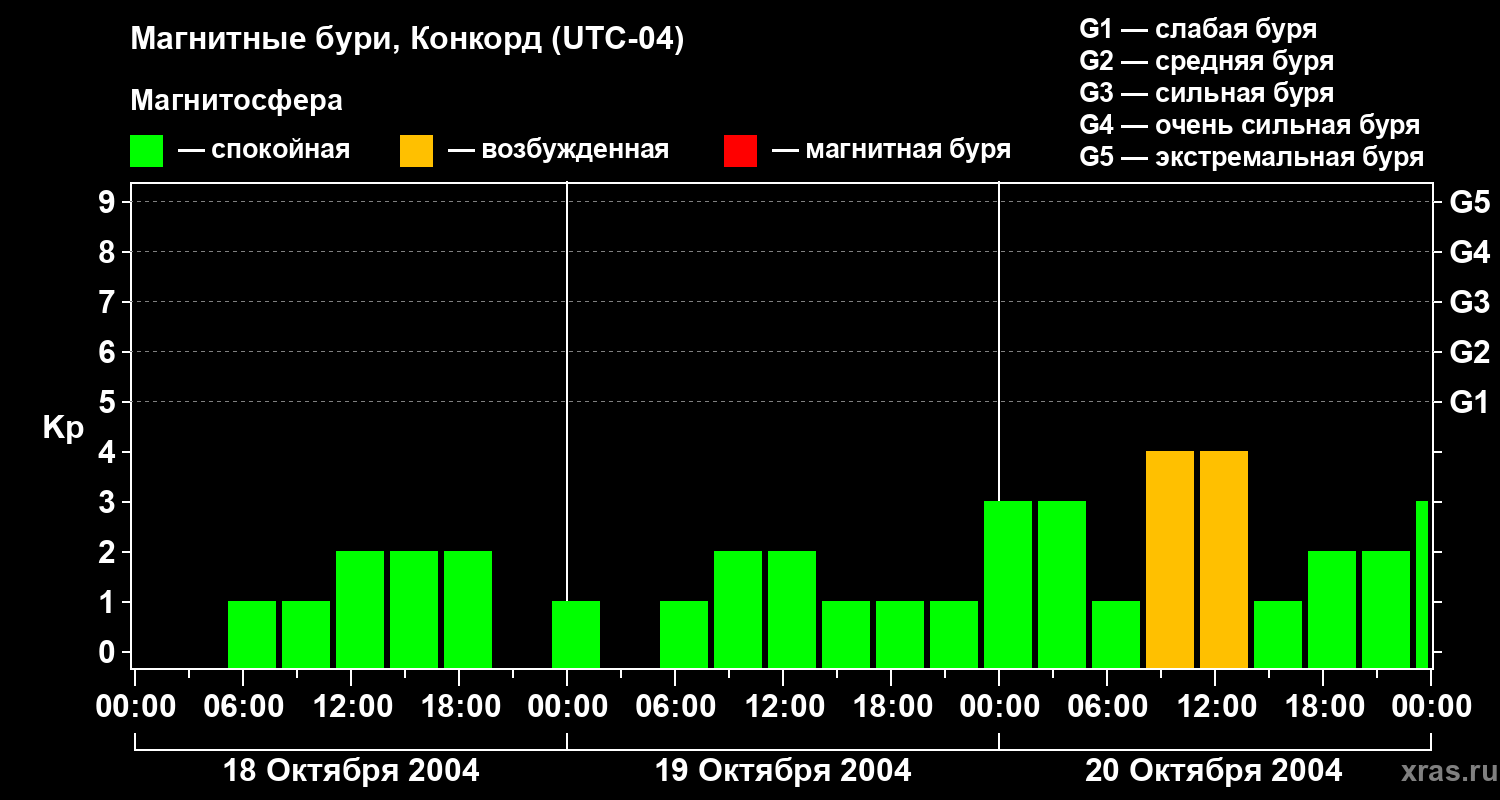 Магнитные бури в Конкорде — 20 октября 2004 года