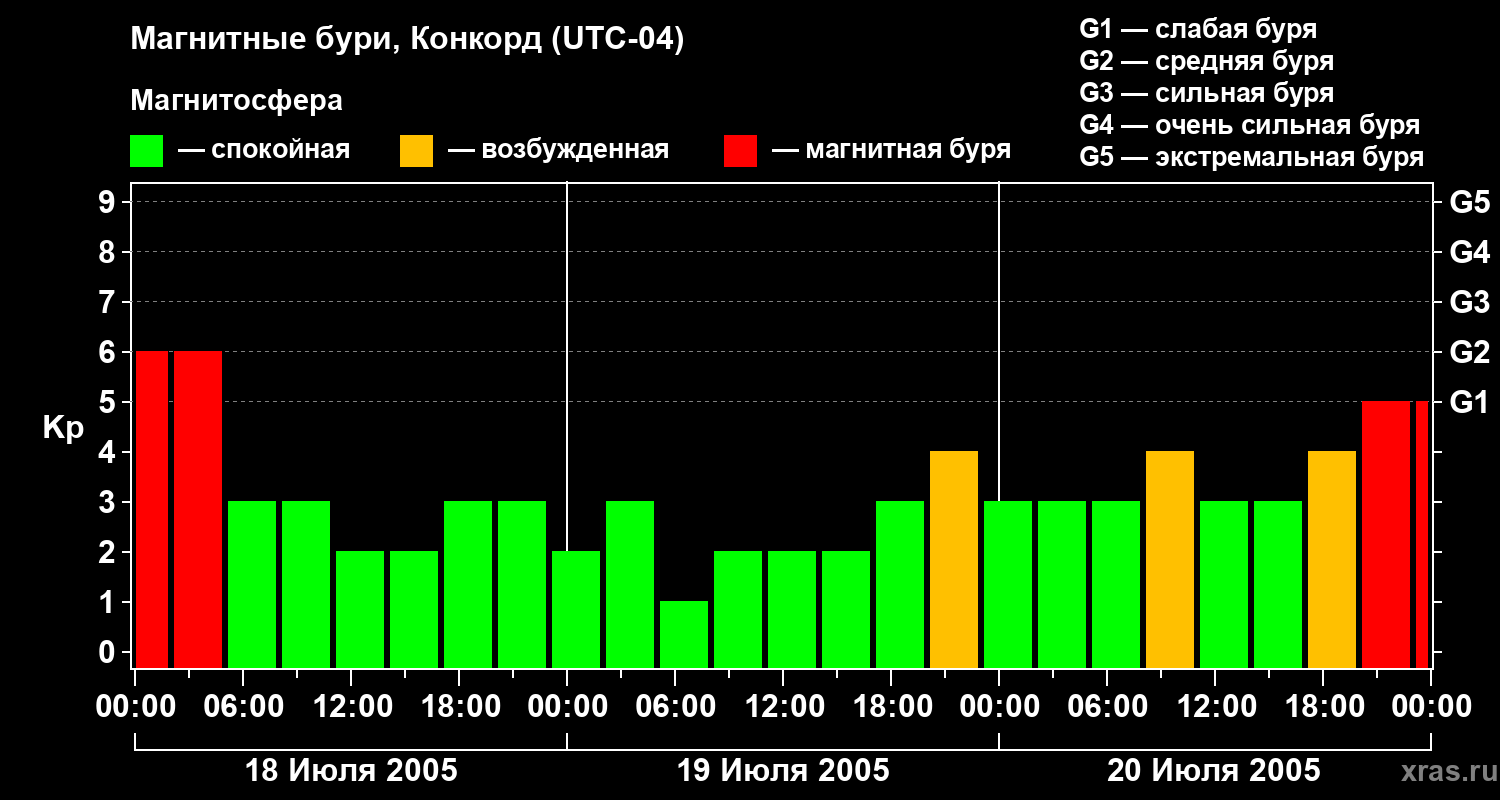 Магнитные бури в Конкорде — 20 июля 2005 года