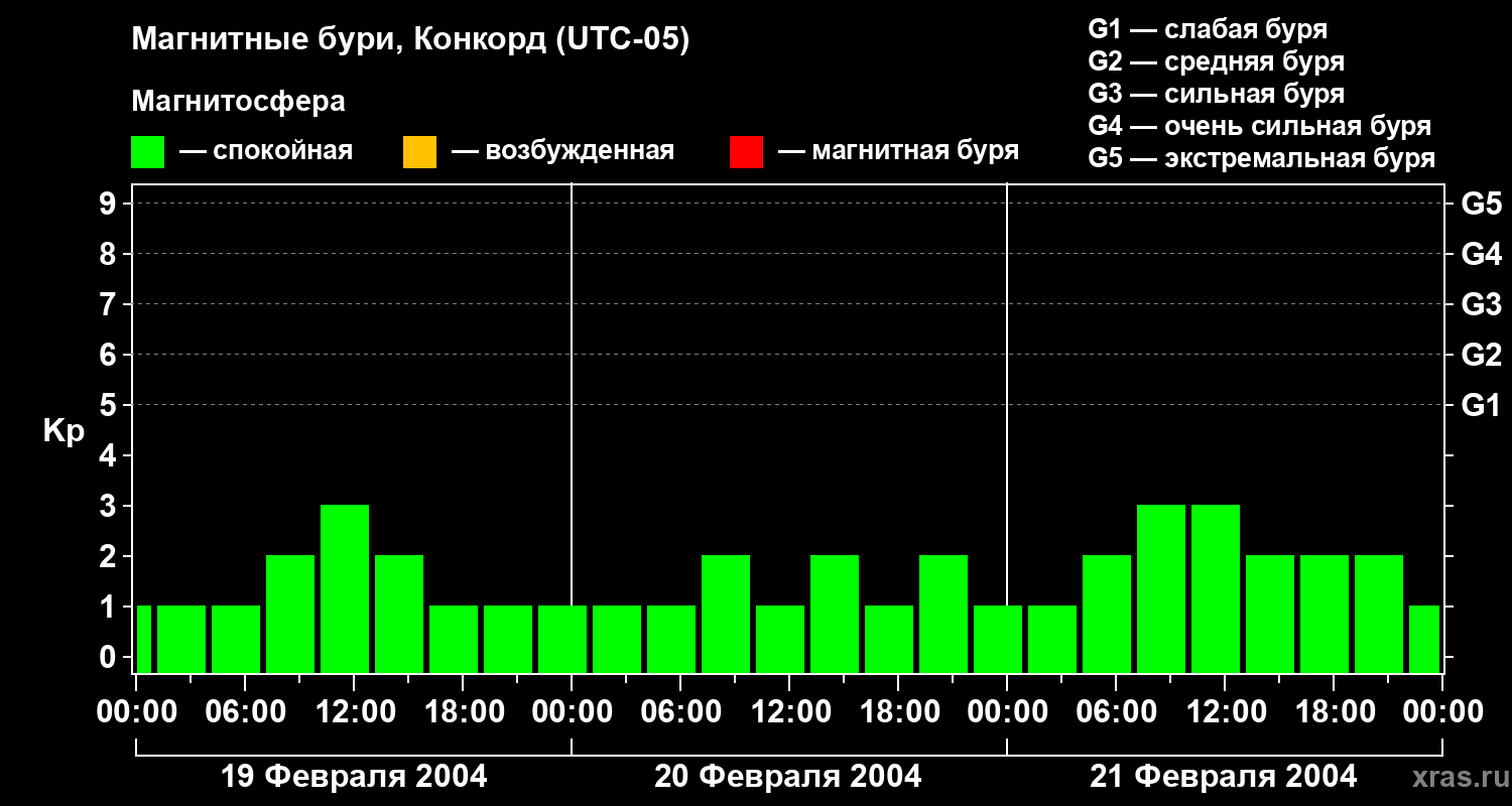 Магнитные бури в Конкорде 21 февраля 2004 года