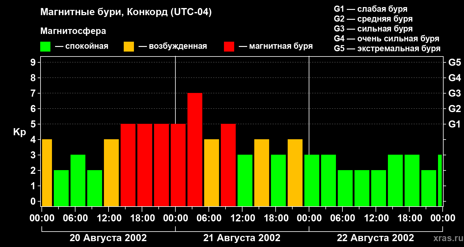 Магнитные бури в Конкорде — 22 августа 2002 года