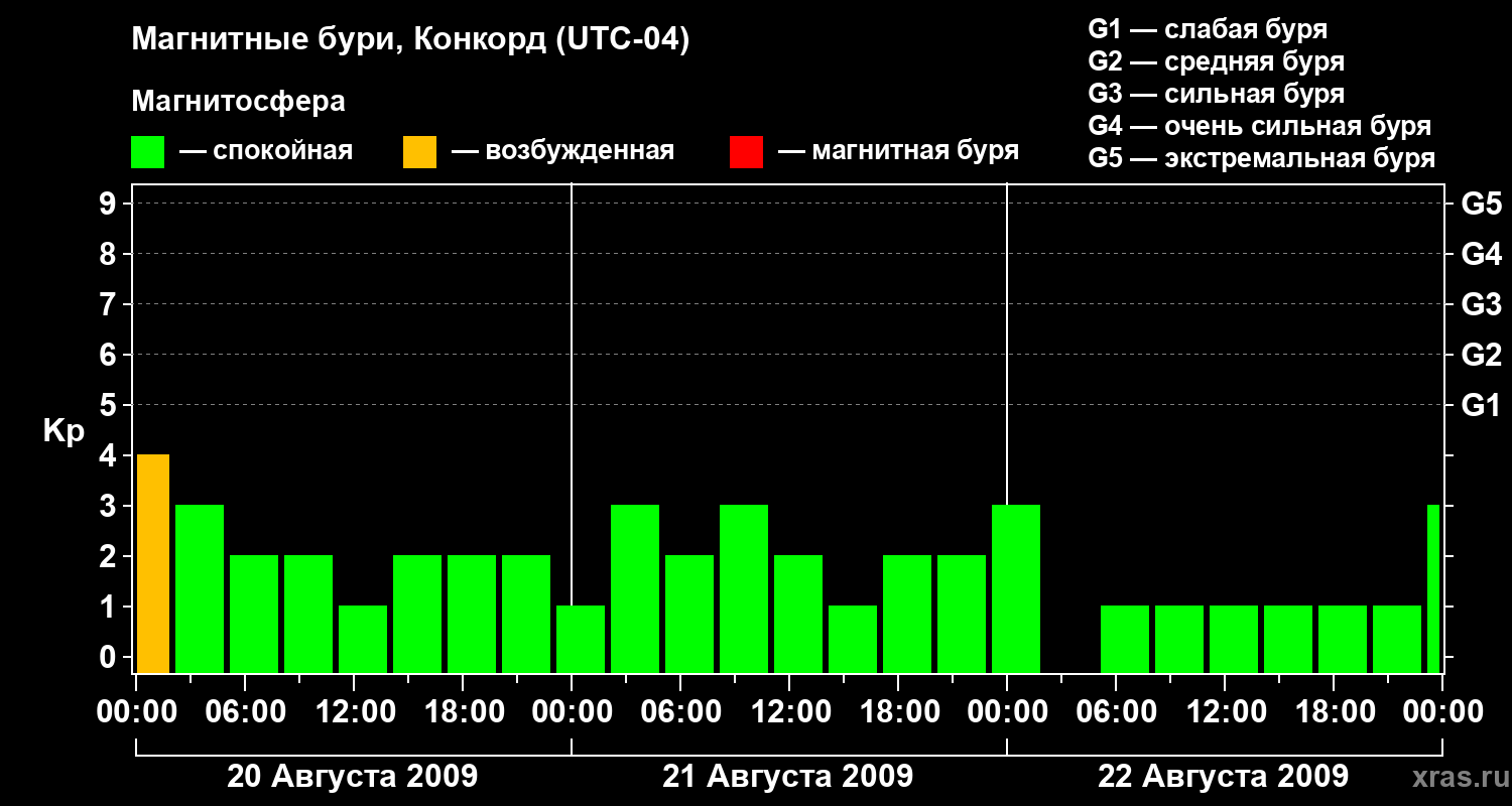 Магнитные бури в Конкорде — 22 августа 2009 года
