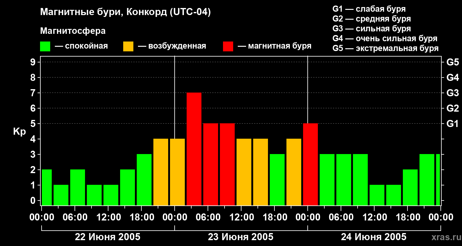 Магнитные бури в Конкорде — 24 июня 2005 года