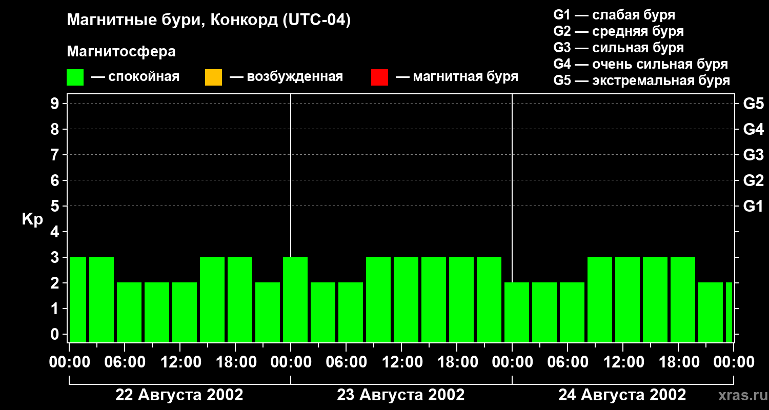 Магнитные бури в Конкорде 24 августа 2002 года