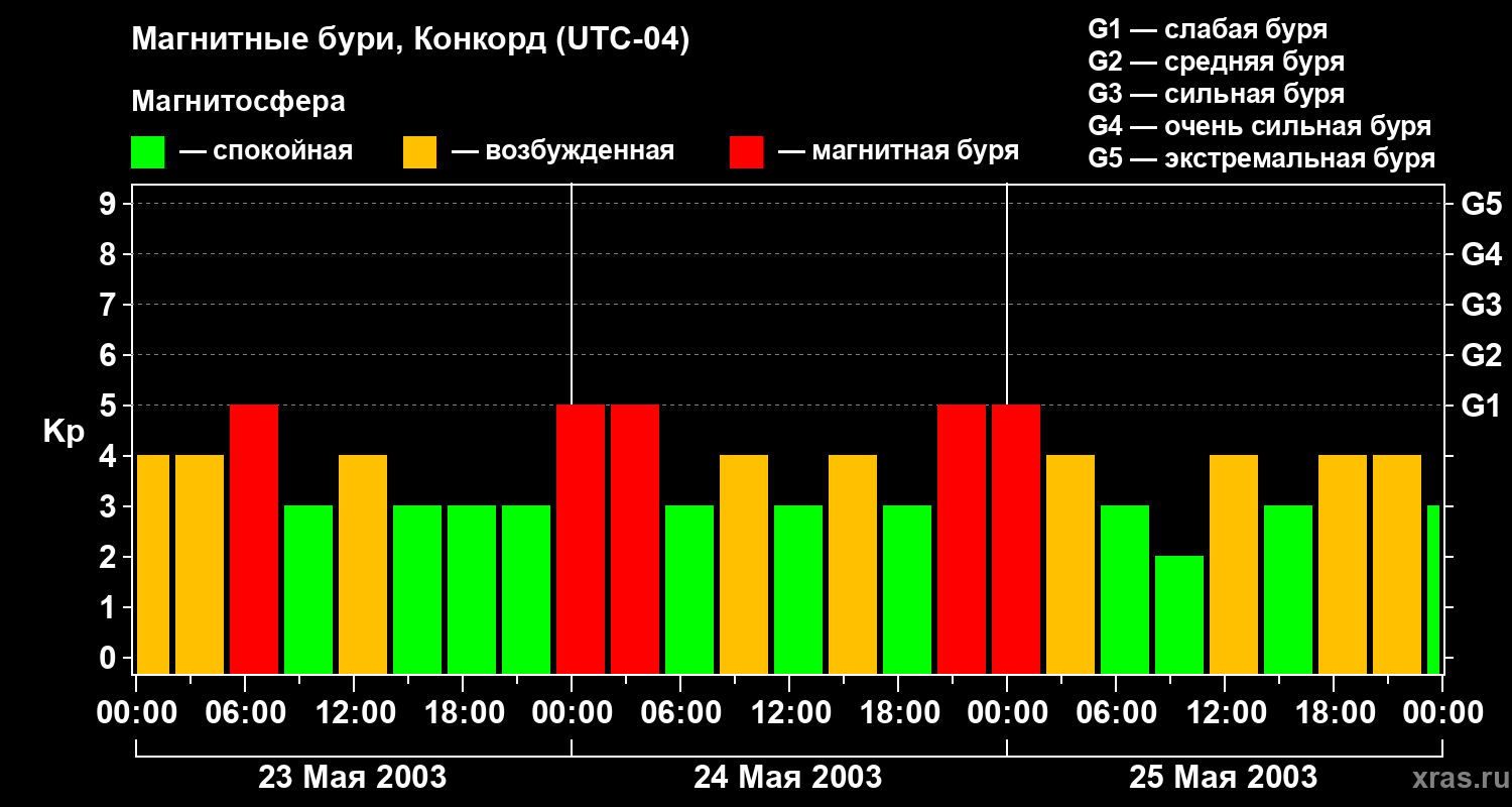 Магнитные бури в Конкорде — 25 мая 2003 года