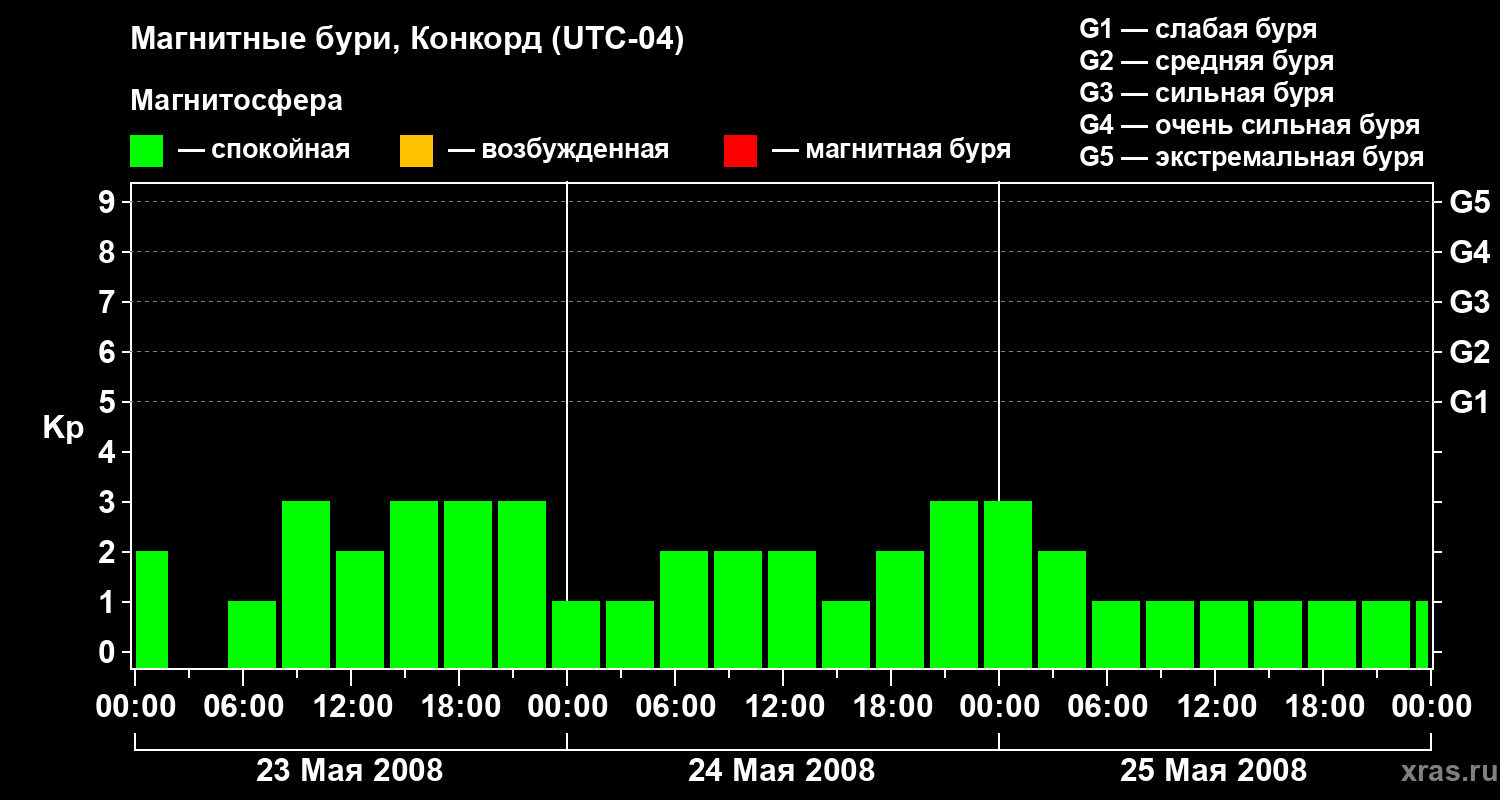 Магнитные бури в Конкорде — 25 мая 2008 года