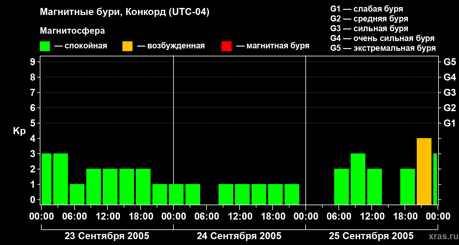Магнитные бури в Конкорде 25 сентября 2005 года