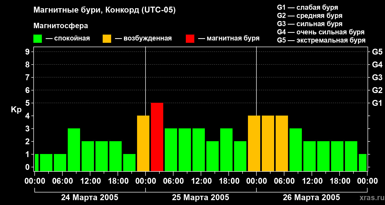 Магнитные бури в Конкорде 26 марта 2005 года