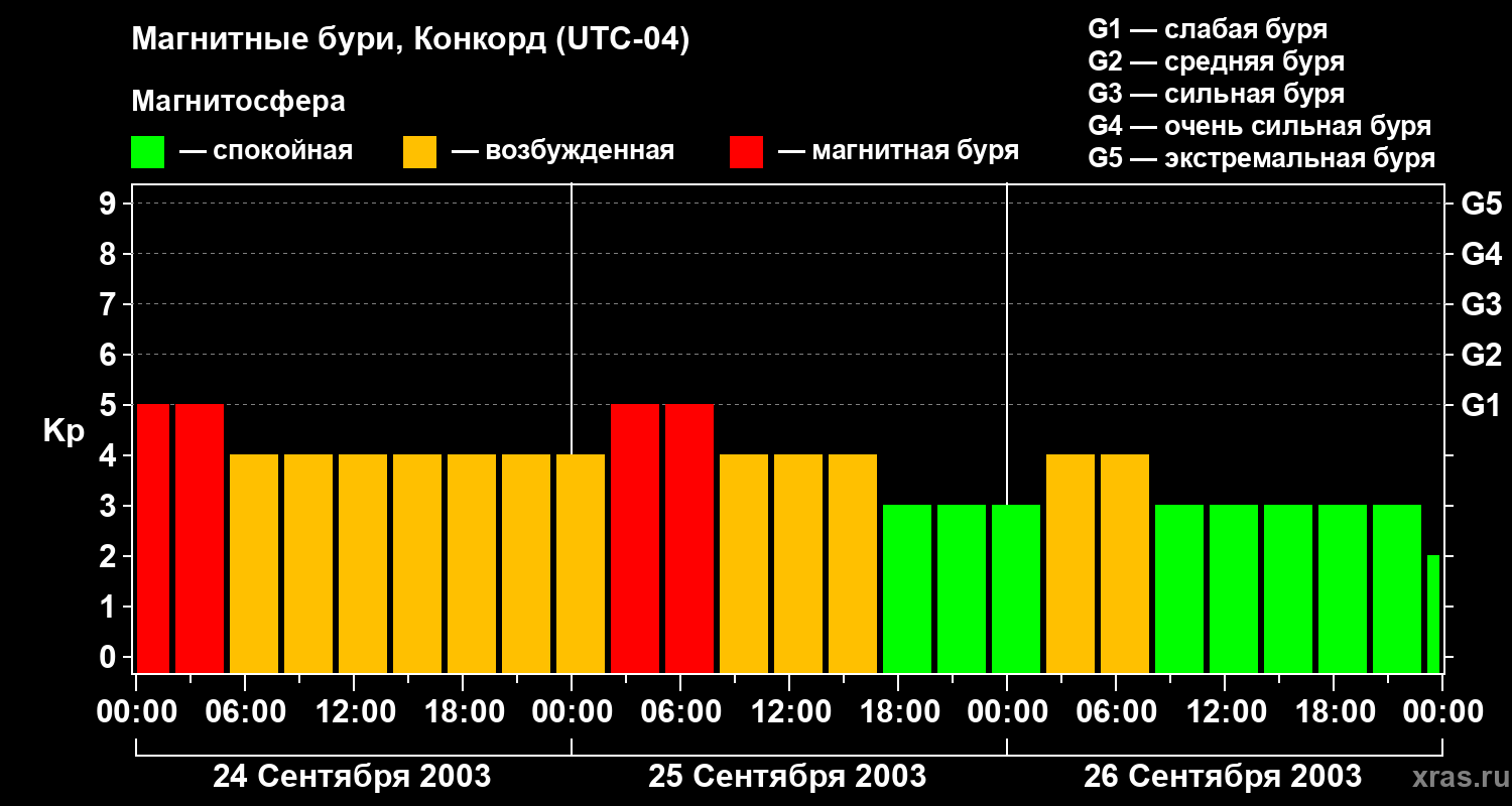 Магнитные бури в Конкорде — 26 сентября 2003 года