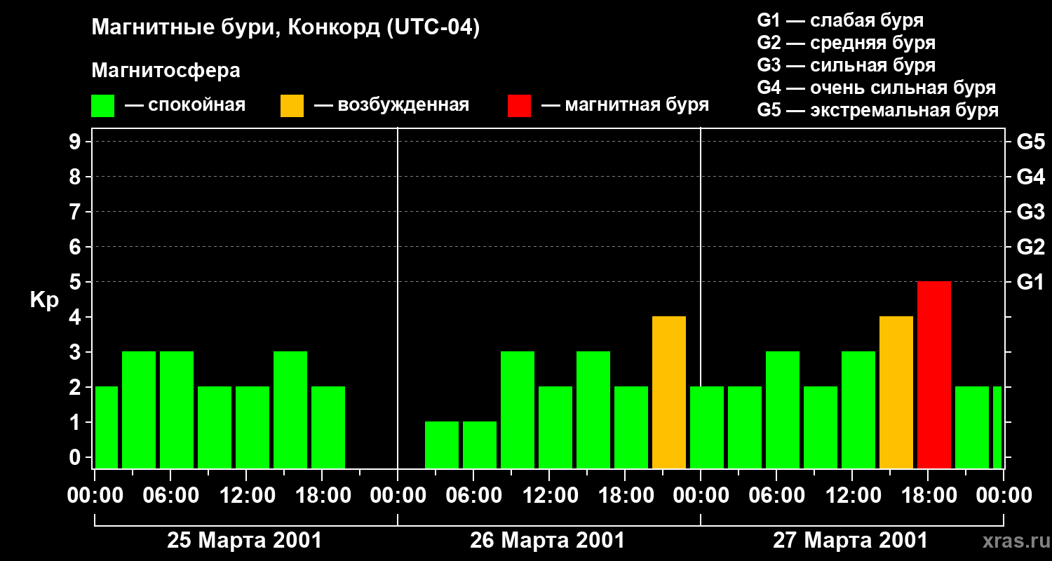 Магнитные бури в Конкорде — 27 марта 2001 года