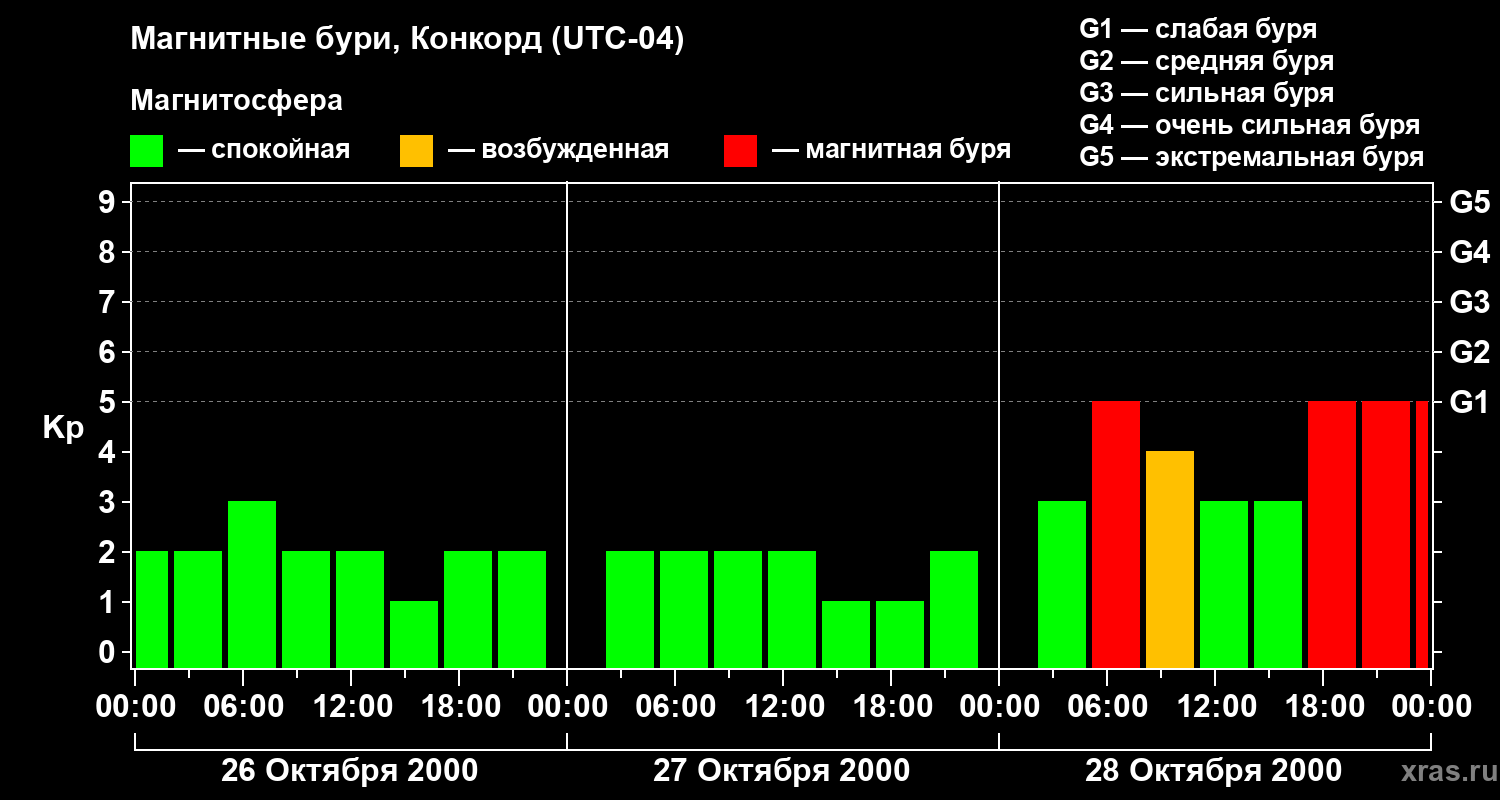 Магнитные бури в Конкорде — 28 октября 2000 года