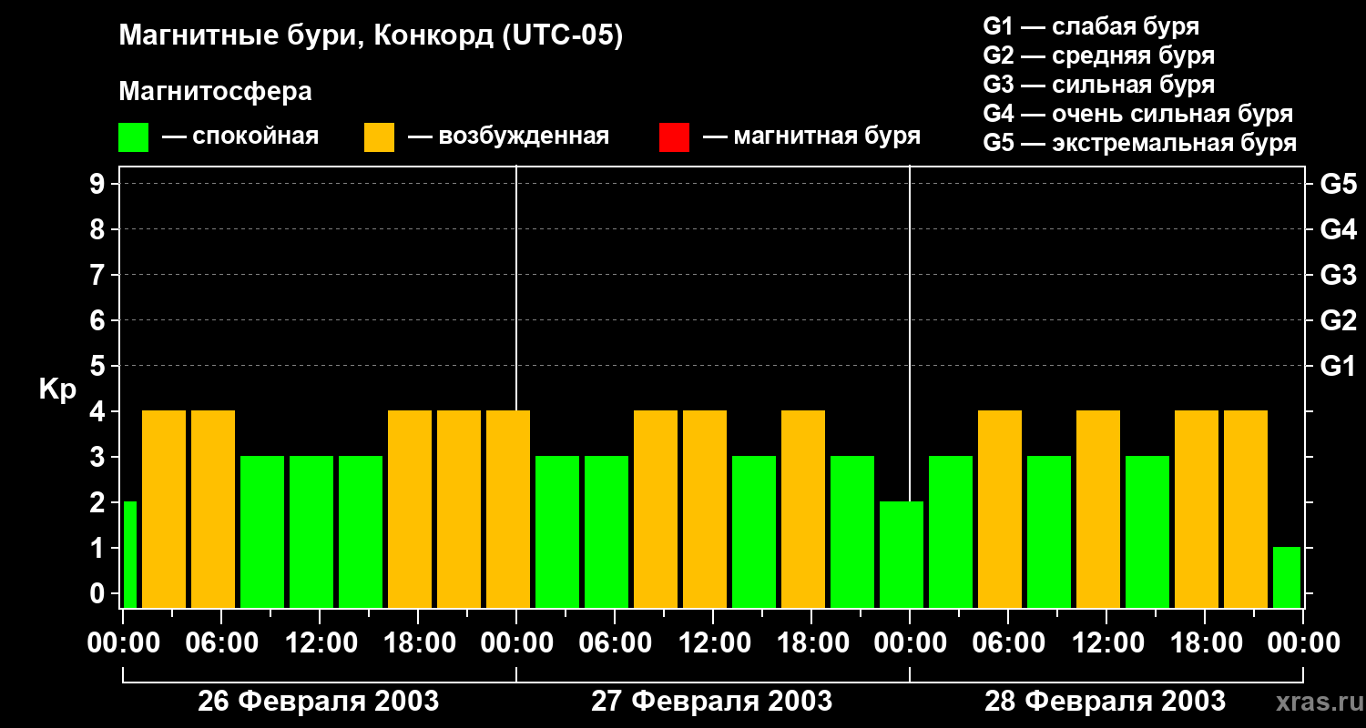 Магнитные бури в Конкорде — 28 февраля 2003 года