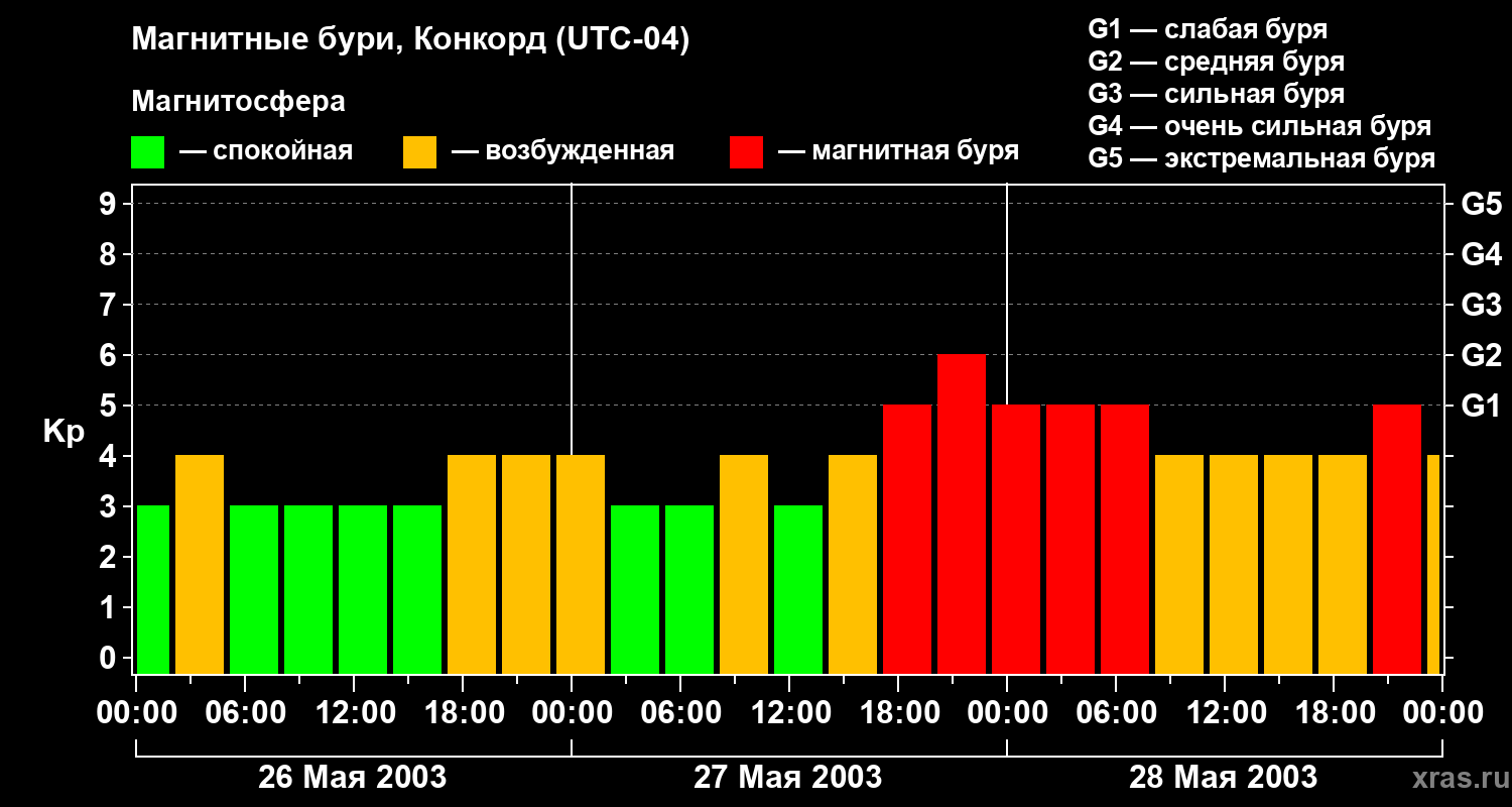 Магнитные бури в Конкорде — 28 мая 2003 года
