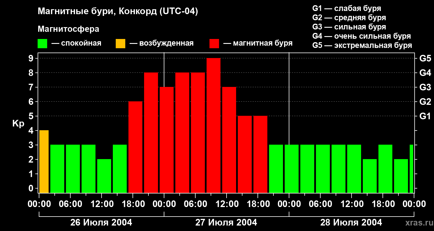 Магнитные бури в Конкорде — 28 июля 2004 года