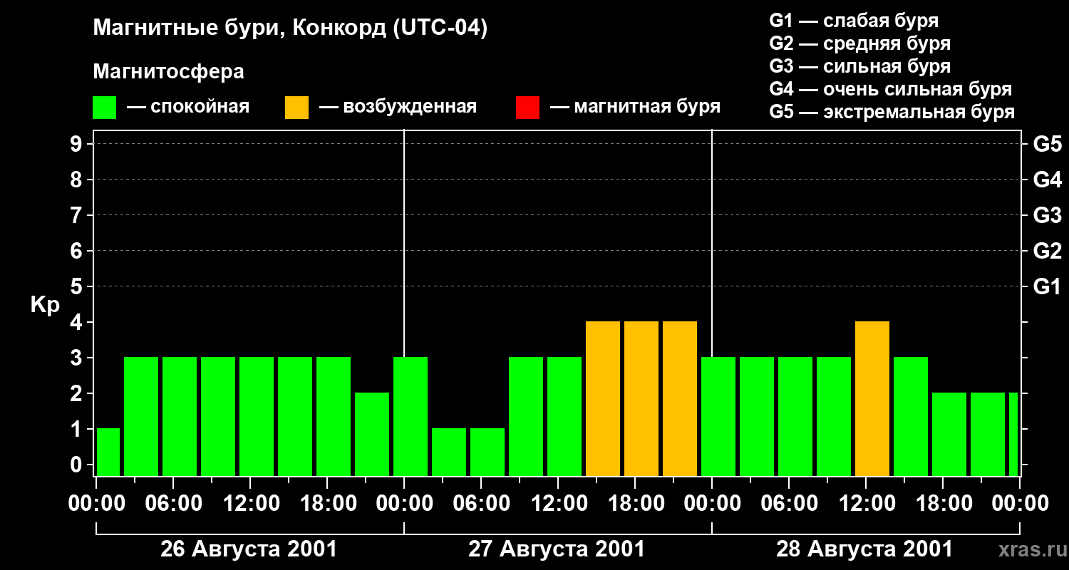 Магнитные бури в Конкорде — 28 августа 2001 года