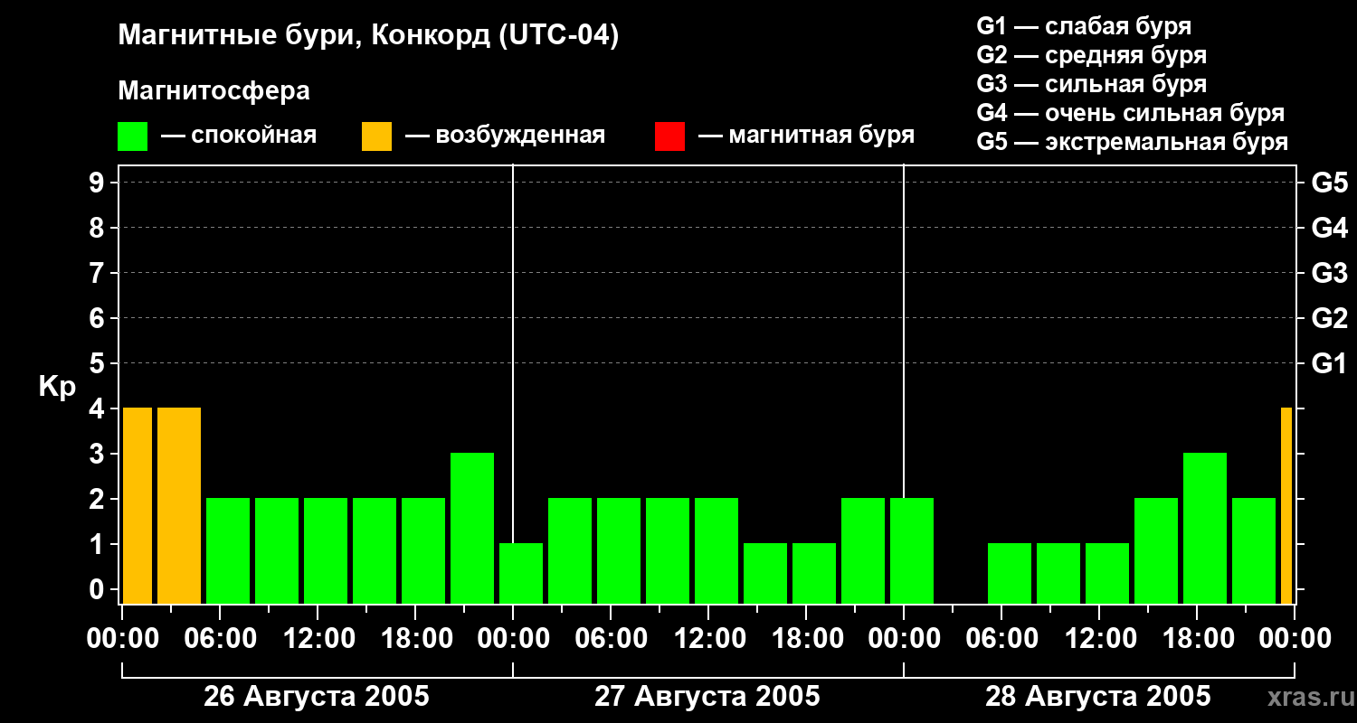 Магнитные бури в Конкорде — 28 августа 2005 года