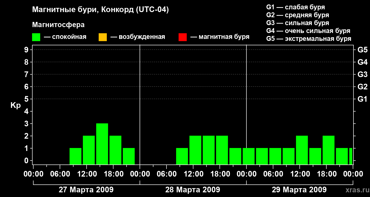 Магнитные бури в Конкорде — 29 марта 2009 года