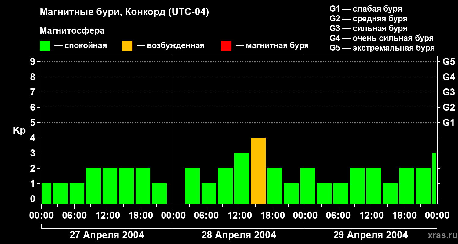 Магнитные бури в Конкорде в апреле 2004 года