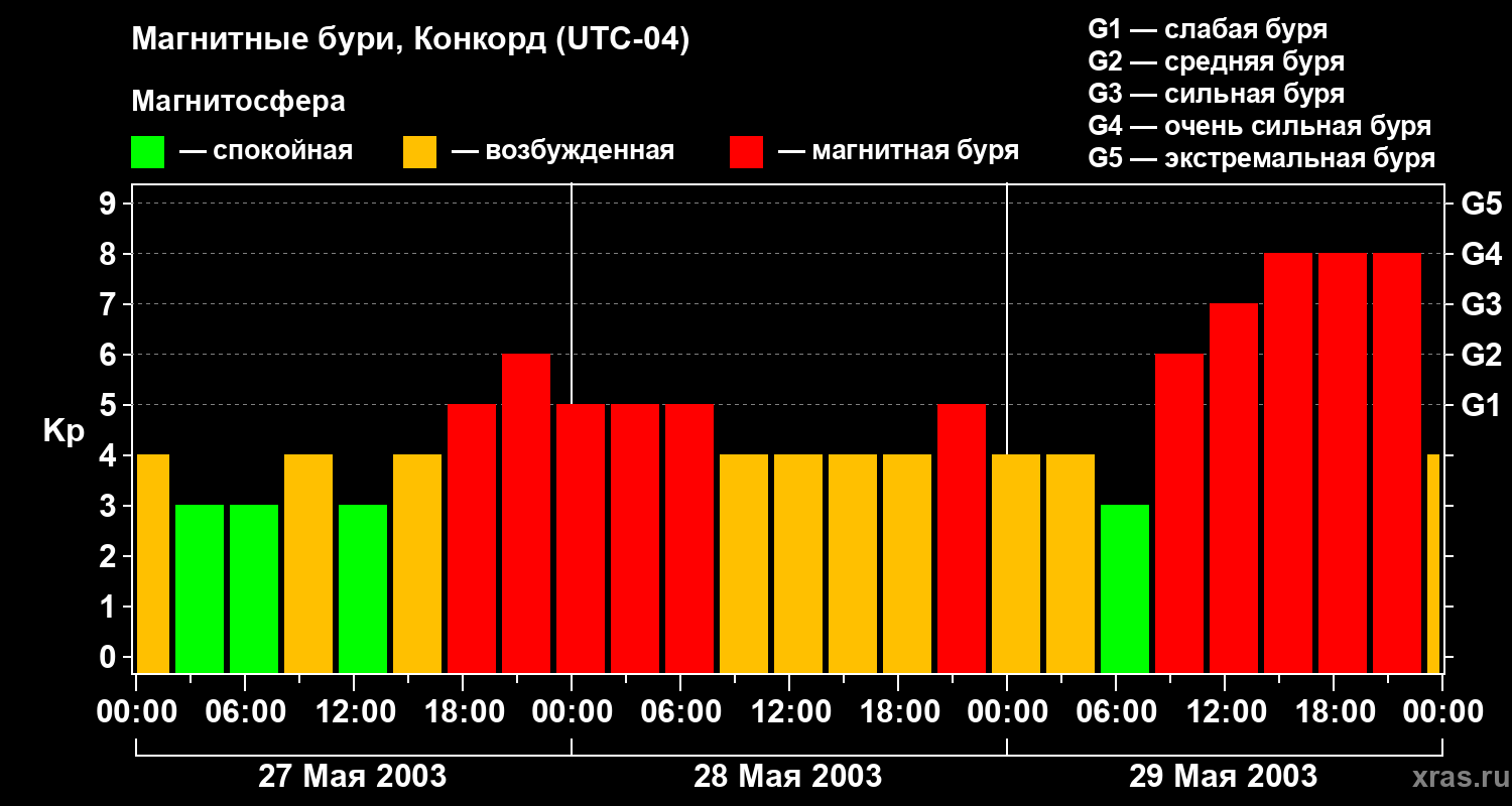 Магнитные бури в Конкорде — 29 мая 2003 года
