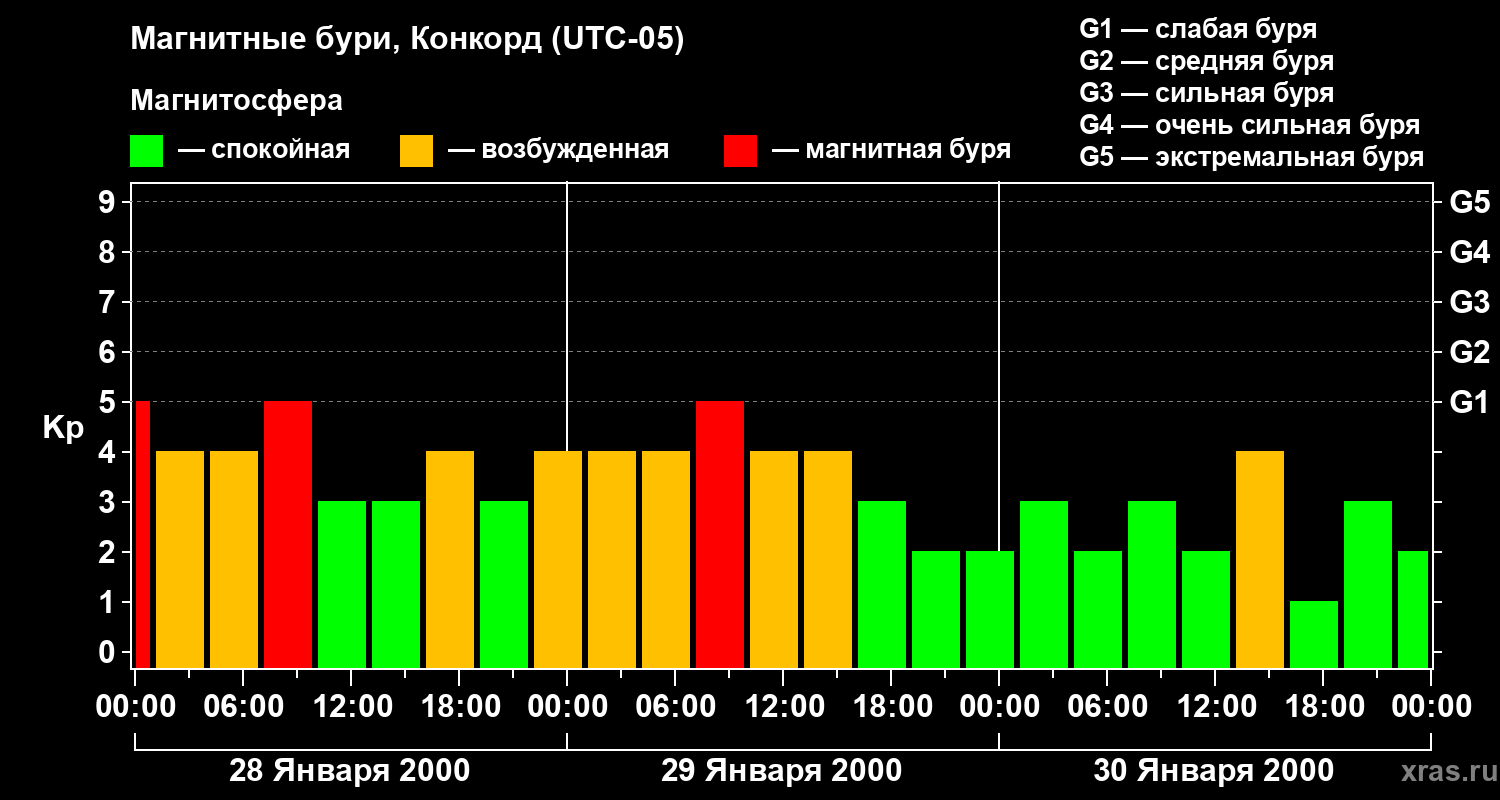Магнитные бури в Конкорде — 30 января 2000 года