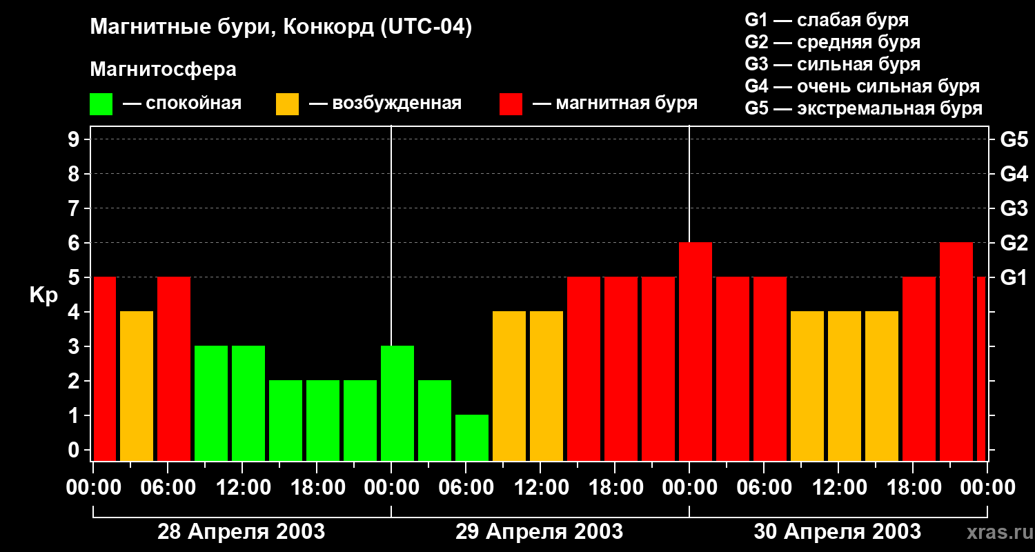 Магнитные бури в Конкорде — 30 апреля 2003 года