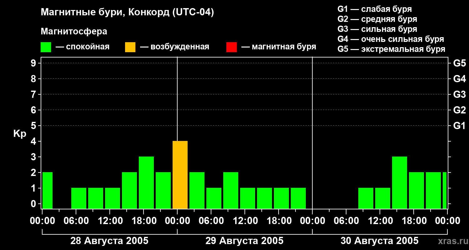 Магнитные бури в Конкорде — 30 августа 2005 года