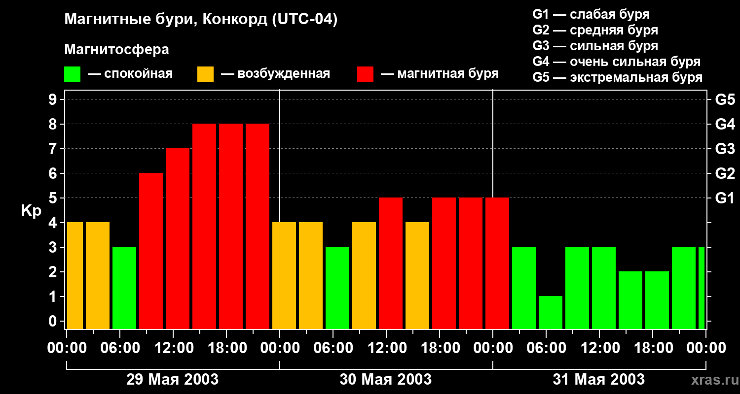 Магнитные бури в Конкорде — 31 мая 2003 года
