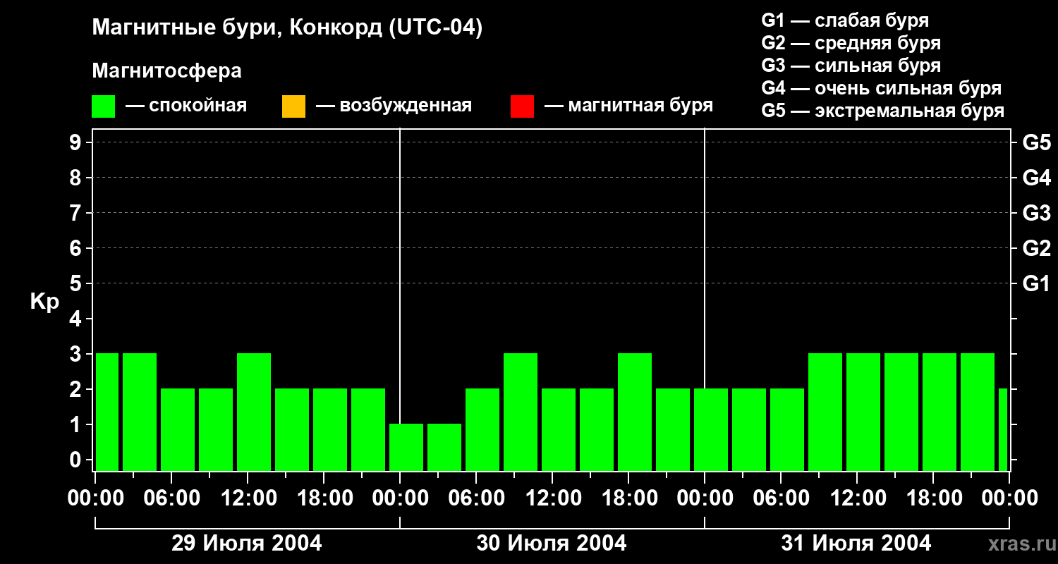 Магнитные бури в Конкорде — 31 июля 2004 года