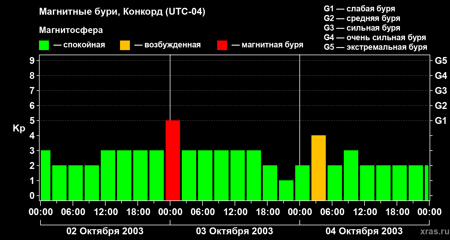 Магнитные бури в Конкорде — 4 октября 2003 года