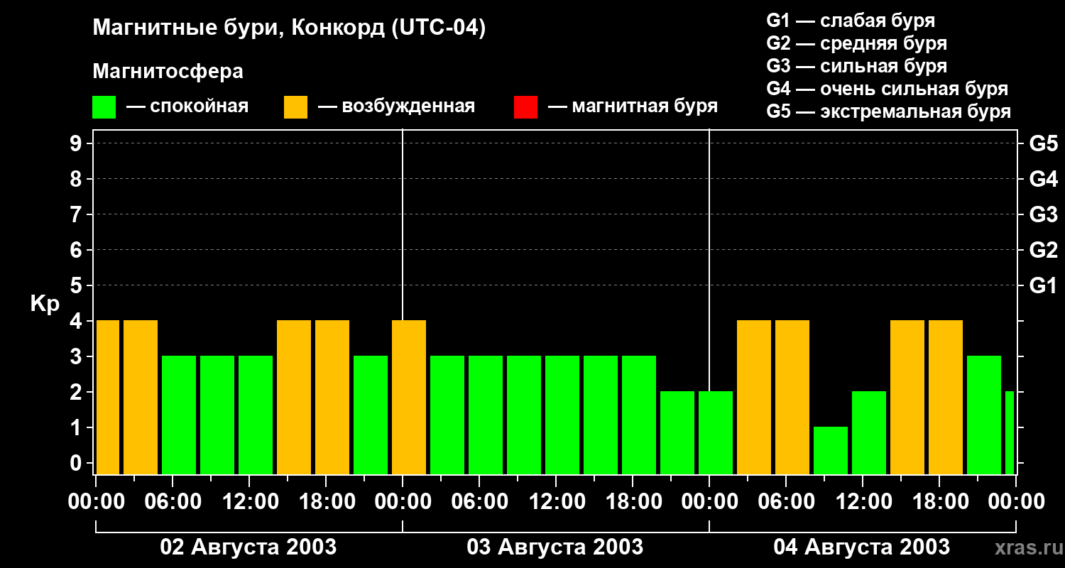 Магнитные бури в Конкорде — 4 августа 2003 года