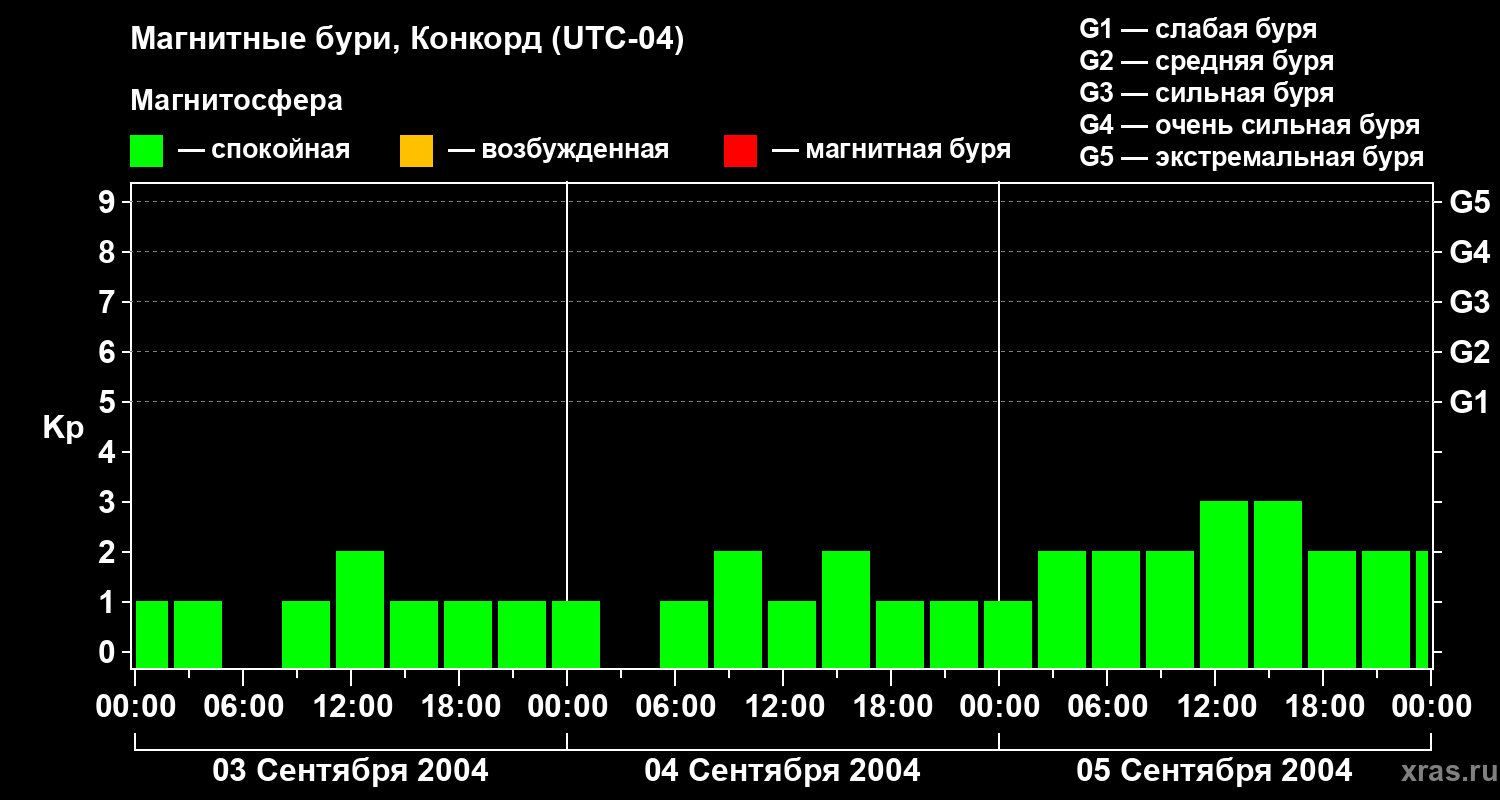 Магнитные бури в Конкорде 5 сентября 2004 года