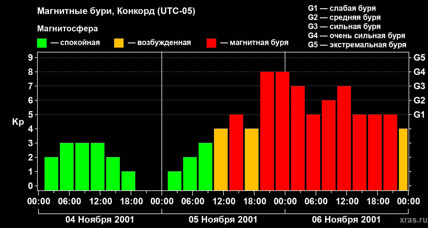 Магнитные бури в Конкорде 6 ноября 2001 года