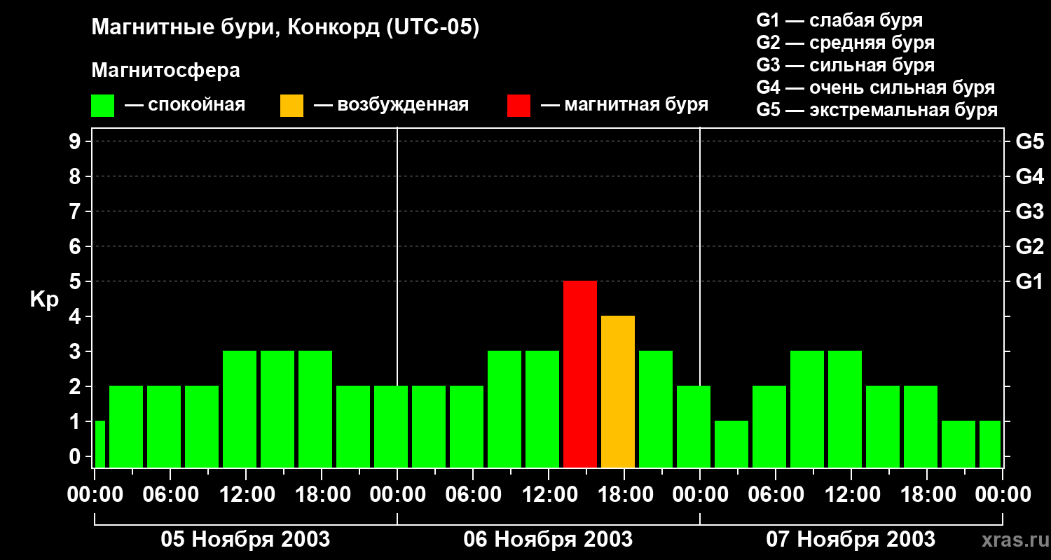 Магнитные бури в Конкорде — 7 ноября 2003 года