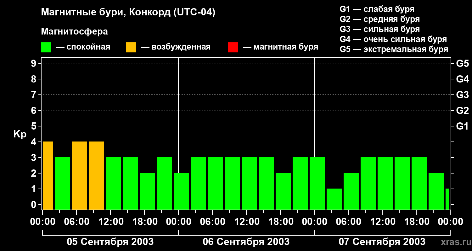 Магнитные бури в Конкорде — 7 сентября 2003 года