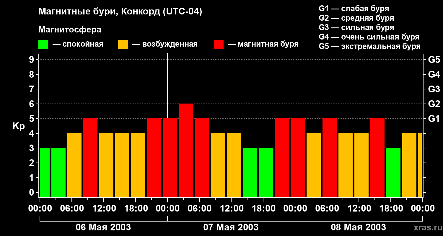 Магнитные бури в Конкорде — 8 мая 2003 года