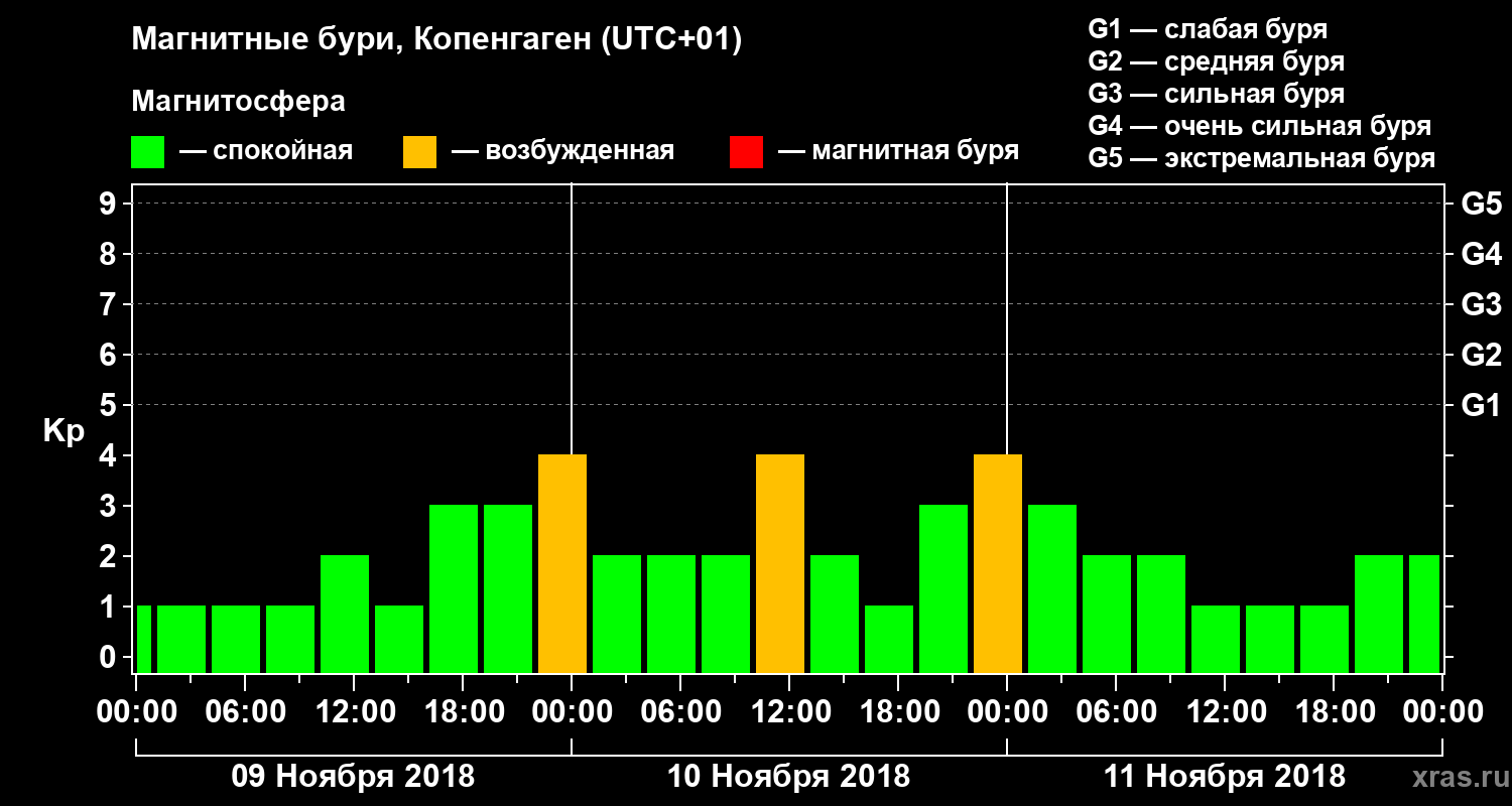 Магнитные бури в Копенгагене — 11 ноября 2018 года