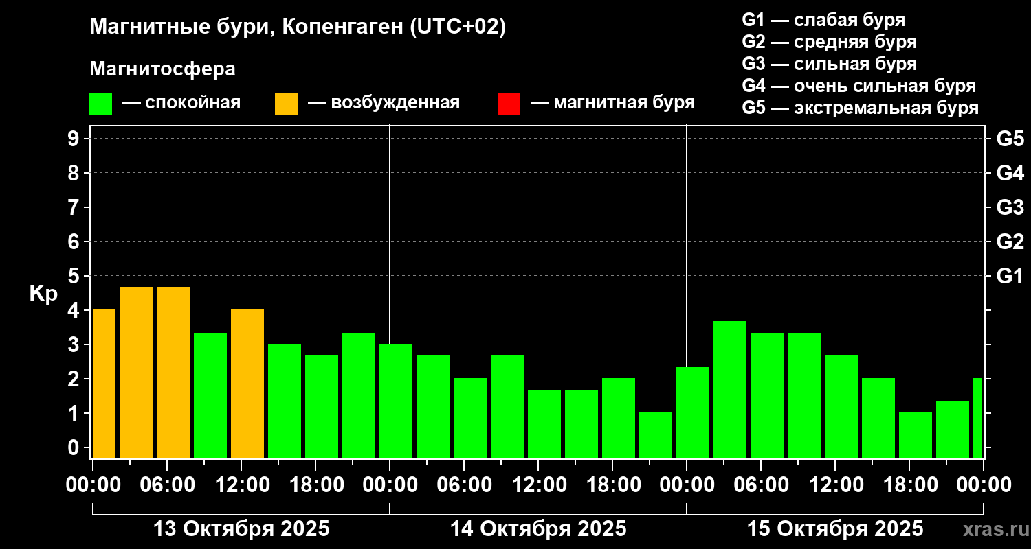 Магнитные бури в Копенгагене 15 октября 2025 года