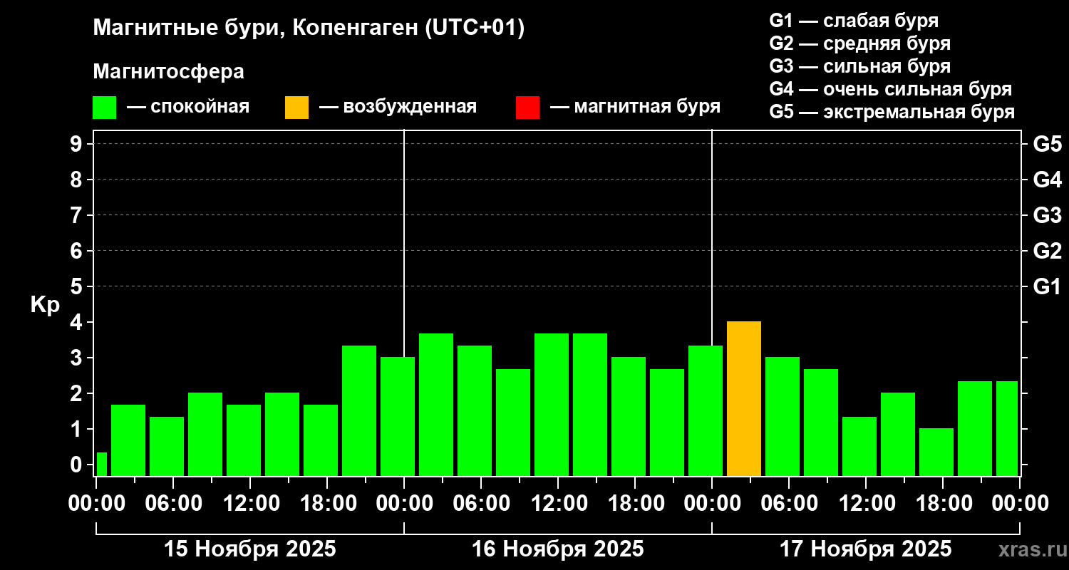 Магнитные бури в Копенгагене — 17 ноября 2025 года
