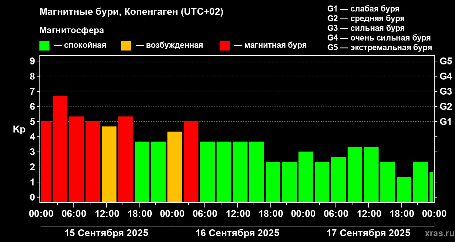 Магнитные бури в Копенгагене — 17 сентября 2025 года