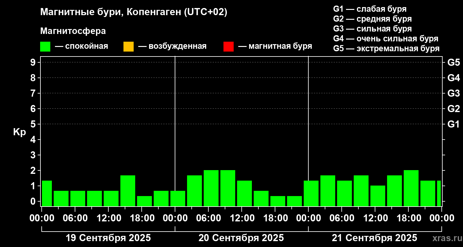 Магнитные бури в Копенгагене 21 сентября 2025 года