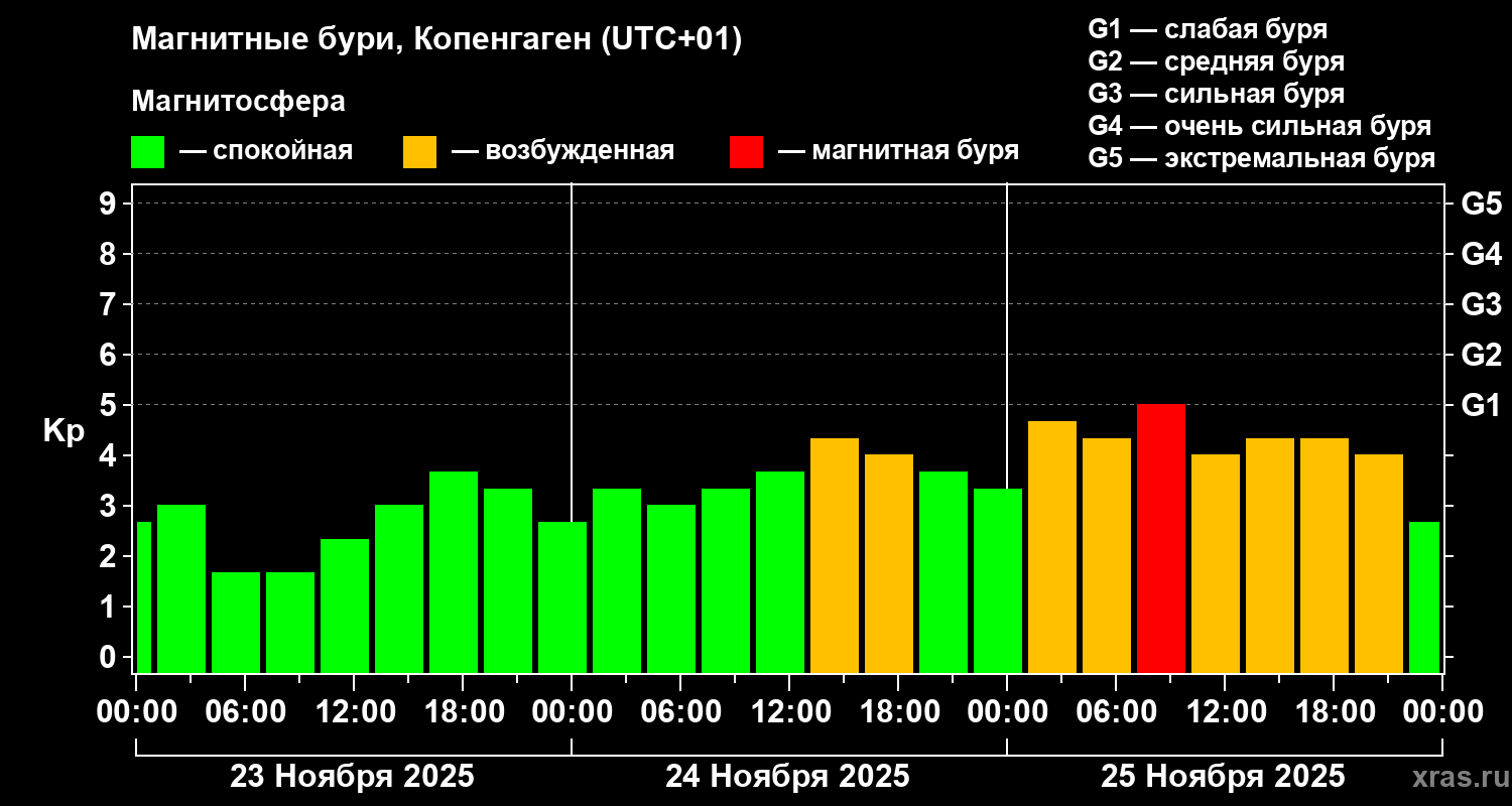 Магнитные бури в Копенгагене — 25 ноября 2025 года