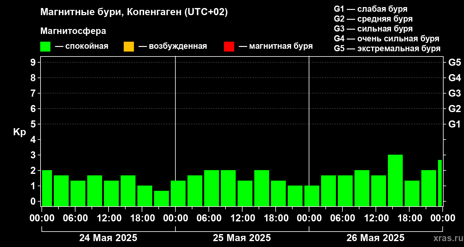 Магнитные бури в Копенгагене 26 мая 2025 года