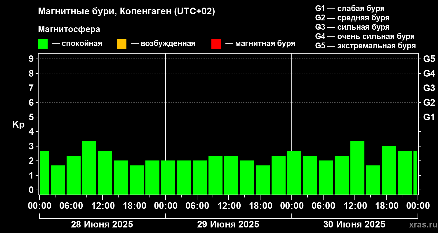 Магнитные бури в Копенгагене 30 июня 2025 года