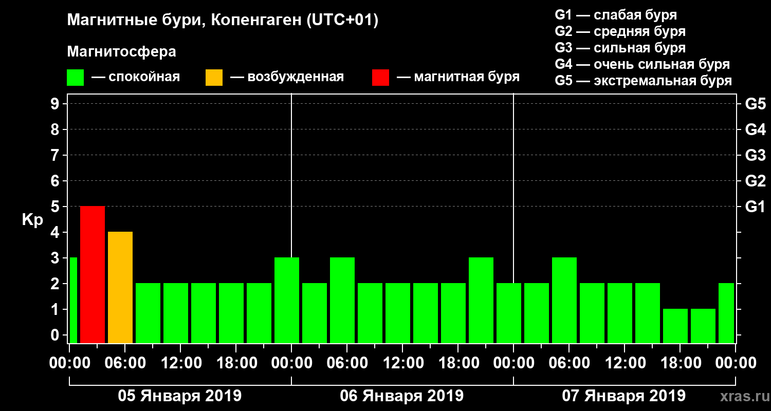 Магнитные бури в Копенгагене 7 января 2019 года