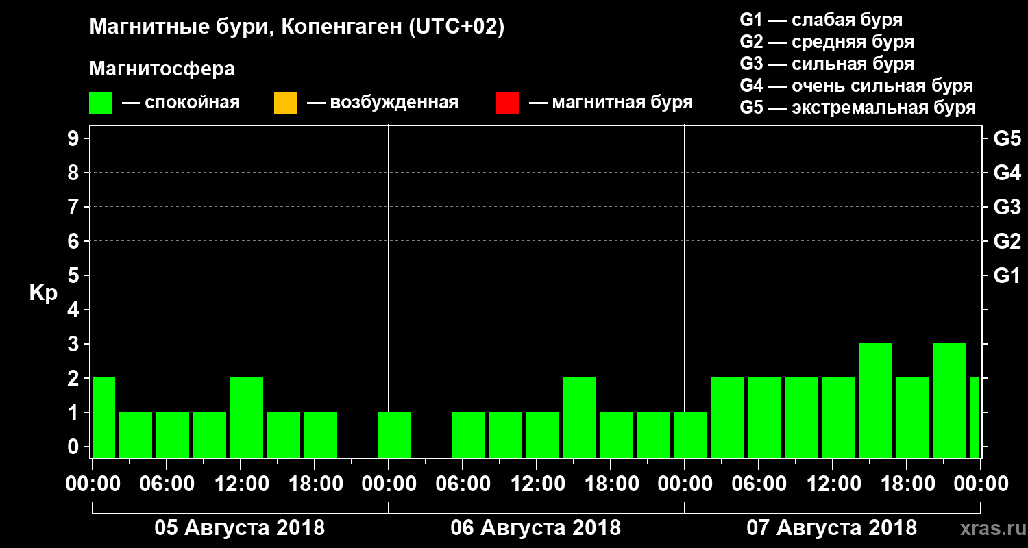 Магнитные бури в Копенгагене 7 августа 2018 года