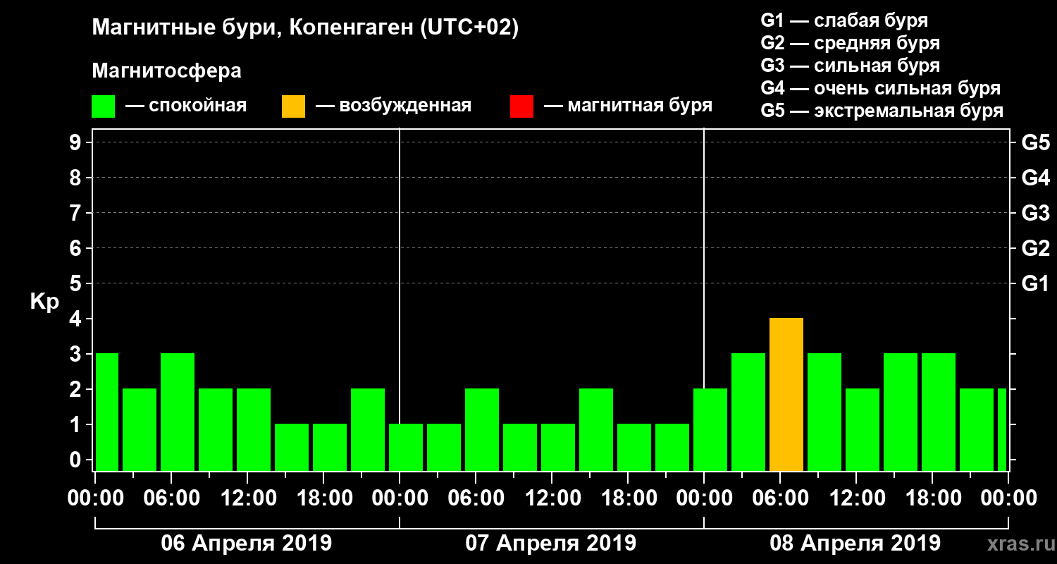 Магнитные бури в Копенгагене 8 апреля 2019 года