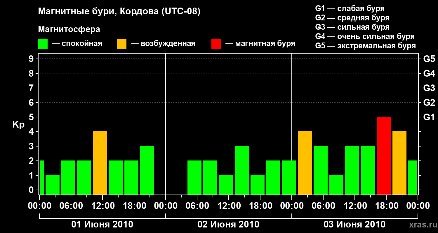 Магнитные бури в Кордове 3 июня 2010 года