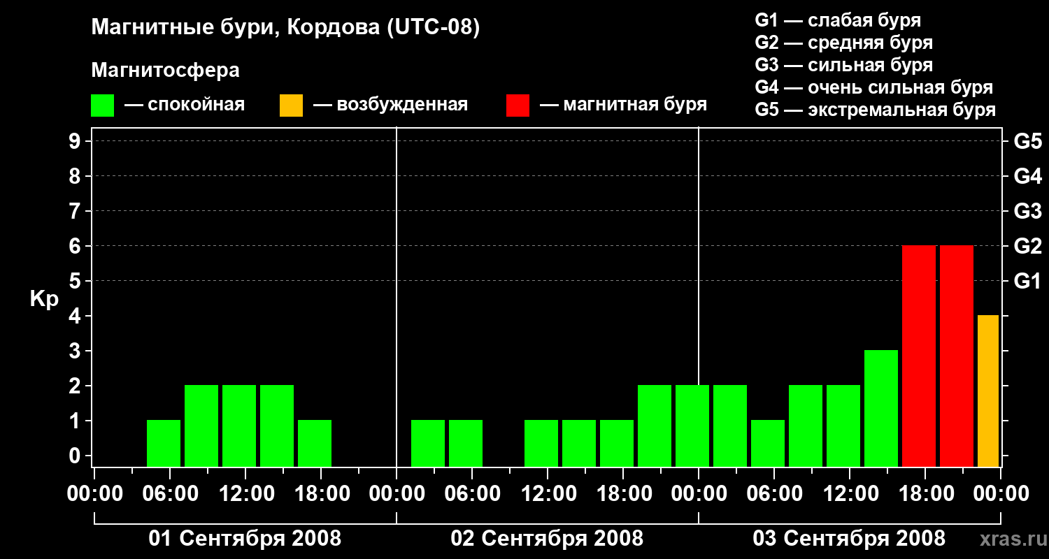 Магнитные бури в Кордове 3 сентября 2008 года